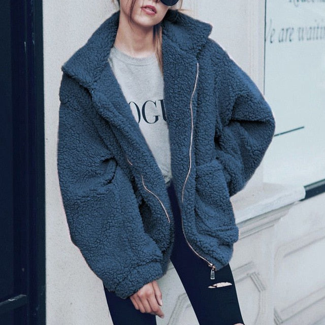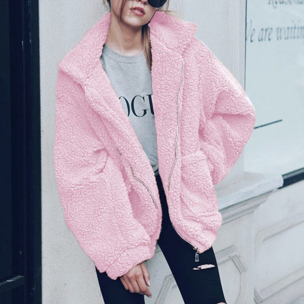 Winter Women Jackets Coat Warm Jumper Cardigans Women Fleece Faux Fur Coat Outwear Solid Zipper Coats Plus size 3XL Oc12